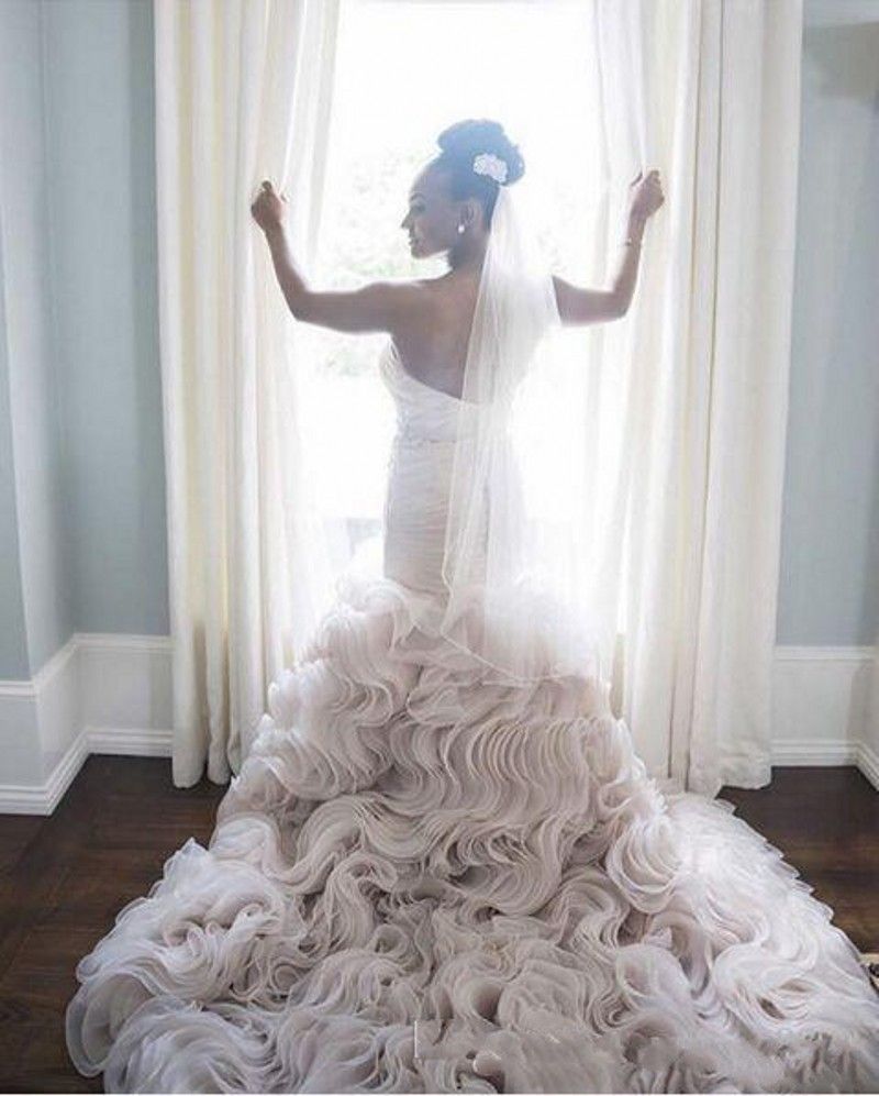 2018 Mermaid Wedding Dresses Luxury Beaded Sheer Back With Ruffles : Sparkling Bold Plunging V Sheer Mermaid Prom Dress - Lunss / New blue muslim wedding dresses white luxury long sleeve wedding gown.. Luxury crystals african mermaid wedding dresses 2020 zipper back long sleeve heave beaded bride dress vestido de noiva. The main feature is skirt, which gives the image of femininity. Appliques long sleeves ruffles mermaid wedding dress. Charming tulle & lace jewel neckline mermaid wedding dresses with beaded lace appliques. Our mermaid/trumpet wedding gowns 2018 will give you glamour and a dazzling look.