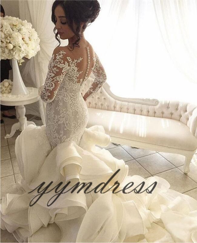 Long sleeves beaded sheer ball gown wedding dress 2018 lace bridal dresses ba4150. 1000 x 1666 jpeg 144 кб. Charming tulle & lace jewel neckline mermaid wedding dresses with beaded lace appliques. White ivory ruffled beading lace up back bridal gown wedding dress custom made. Notice the spectacular mermaid wedding dresses.