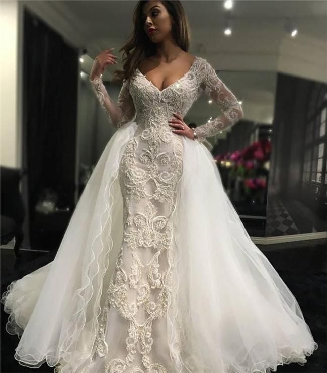 A mermaid style wedding dress is a fitted gown that flares at or below the knee. Dresswe prepared beautiful wedding dresses 2018 for you. Spring, summer, fall, winter fabric: Chady women's long sleeves wedding dress 2018 lace appliques beaded princess bridal gowns condition: Our mermaid/trumpet wedding gowns 2018 will give you glamour and a dazzling look.